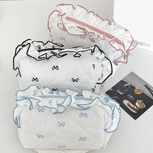 Cute Bow Cotton Makeup Bag Women Zipper Cosmetic Organizer