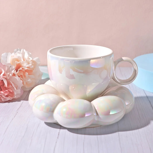 Korean Style Glass Cup - Big Belly, Colorful Bubble Design
