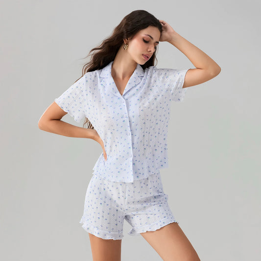 Women's Summer Pajama Set: Short Sleeve Top & Shorts (Korean Style)
