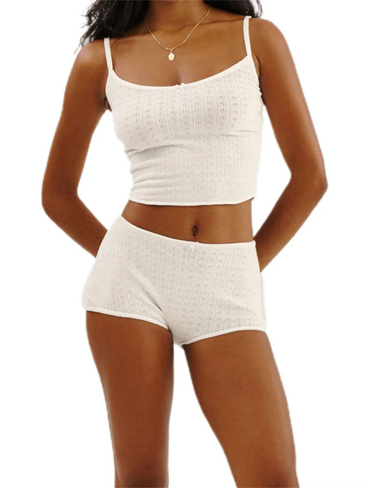 Combhasaki Y2K Kawaii Loungewear: Lace Cami & Low Waist Shorts Set