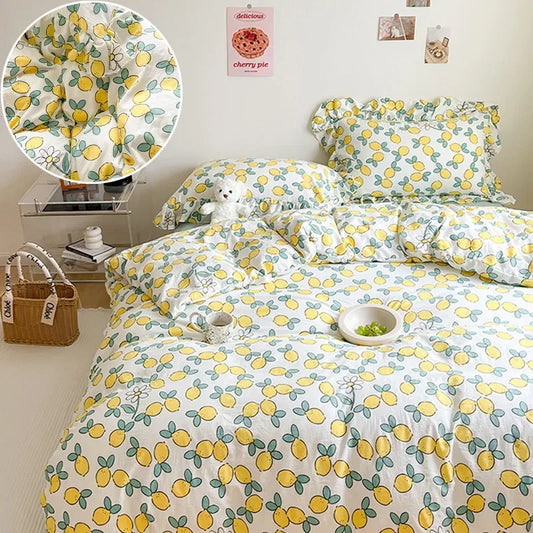 Floral Ins Style Duvet Cover Set Flat Sheet Pillowcase No Filler Soft