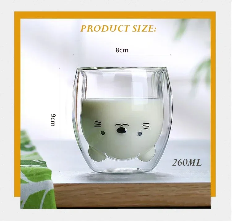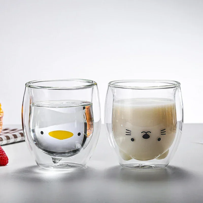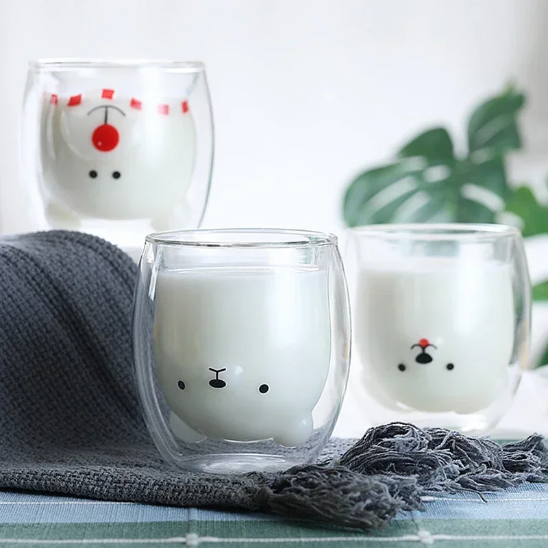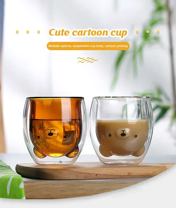 Creative Cute Bear Double-layer Coffee Mug Double Glass Cup Carton Animal Milk Glass Lady Cute Cat Duck Dog Gift Christmas Gift