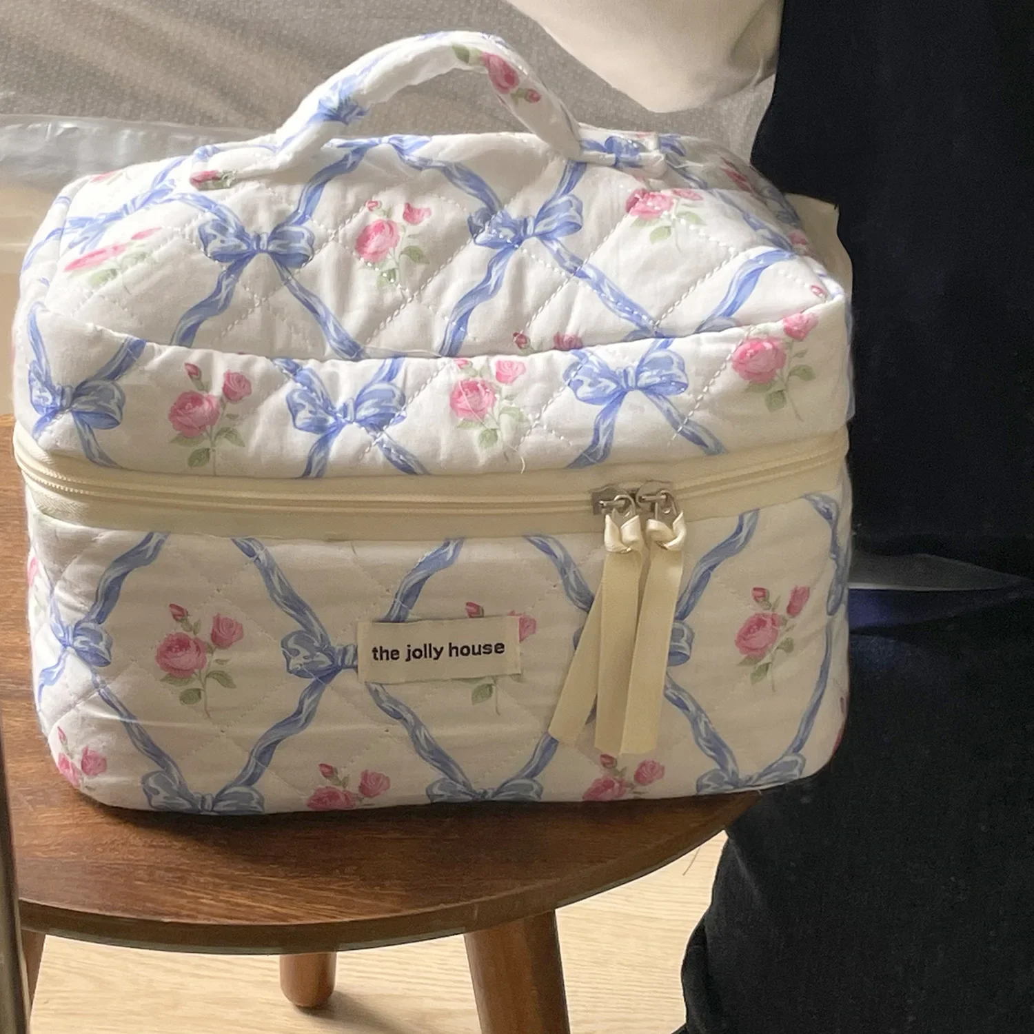 Cute Bow Flower Quilting Cotton Makeup Bag